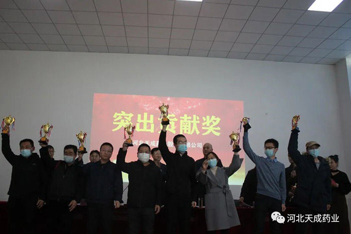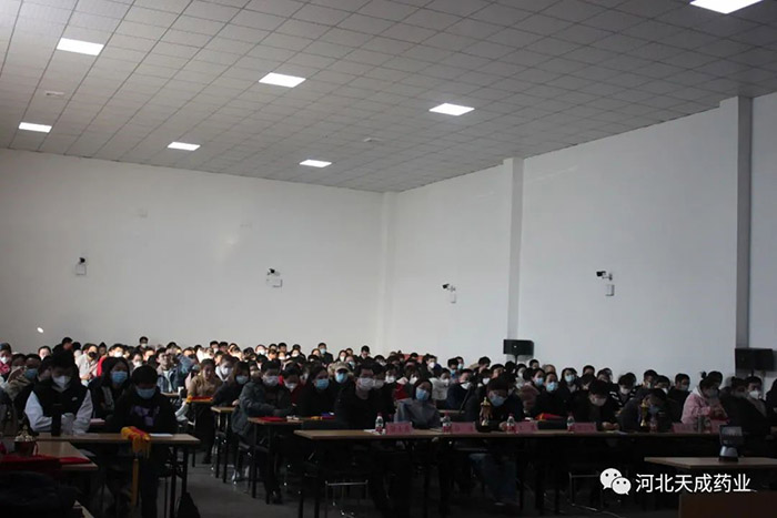 公司董事長王振剛,公司董事、常務副總經理王顥,公司董事、天成藥業總經理兼渤海分公司總經理孫元清,公司董事、天成藥業副總經理、渤海分公司常務副總經理田長有,公司董事、天成藥業常務副總經理王琦,及來自各分公司、各生產車間、各科室部門的領導和同事近200人出席了此次年會。