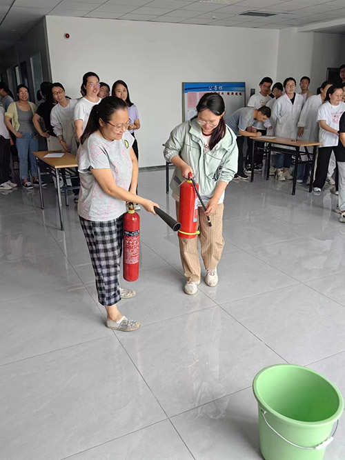逃生演練結束后組織人員在貨梯門前空闊處進行滅火演練及移動式消防器材的滅火演示,全體員工在專業人員的指導下進行現場實地操作;安全員講解關于新址實驗樓建筑消防設施、消防設備的性能特點及作用;使大家學習并了解新實驗樓建筑的消防設施、消防設備及滅火器材的使用方法、注意事項。王俊峰院長就本次消防應急逃生演練作總結,并對今后的消防工作進行安排部署。