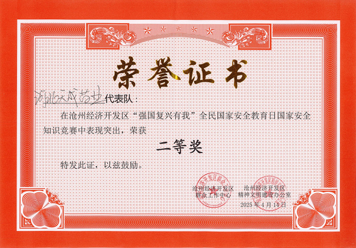 為切實增強企業職工國家安全意識,營造維護國家安全的濃厚氛圍,4月14下午,河北省滄州經濟開發區群眾工作中心聯合區精神文明建設辦公室舉辦了以“強國復興有我”為主題的國家安全知識競賽,包括我單位在內的6支代表隊參賽。