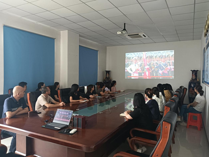 當(dāng)天上午,黨員們齊聚公司會(huì)議室,懷著崇敬的心情等待閱兵儀式開始。9時(shí)許,閱兵儀式正式拉開帷幕,當(dāng)屏幕中出現(xiàn)整齊列隊(duì)的受閱方隊(duì)、先進(jìn)精良的武器裝備以及翱翔天際的空中梯隊(duì)時(shí),大家紛紛被震撼,會(huì)議室里不時(shí)傳來陣陣贊嘆聲。
