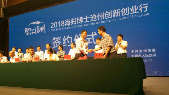 8月8日,“智匯滄州——2018海歸博士滄州創(chuàng)新創(chuàng)業(yè)行”簽約儀式在滄州國際會議中心舉行。董事長兼總經(jīng)理王振剛應(yīng)邀參加盛會并與兩名海歸博士成功簽約。