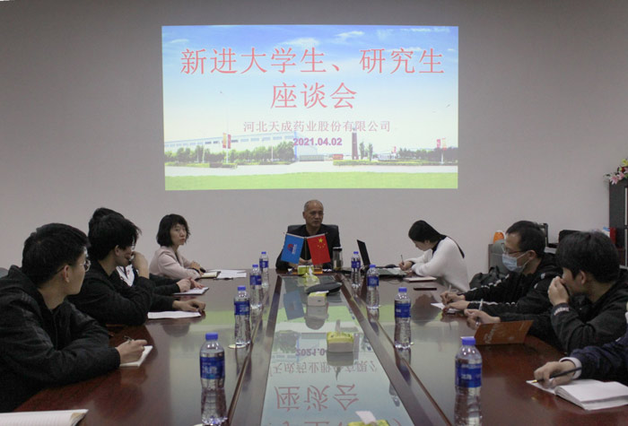 座談會(huì)在輕松、愉悅的氛圍中進(jìn)行,來(lái)自不同地方、不同學(xué)府的40位青年大學(xué)生結(jié)合自身學(xué)習(xí)經(jīng)歷進(jìn)行了簡(jiǎn)單的自我介紹。“擊水三千已揚(yáng)帆,鵬程萬(wàn)里正當(dāng)時(shí)”,在聽(tīng)取新進(jìn)大學(xué)生的發(fā)言后,顥總首先對(duì)大家加入天成藥業(yè)表示熱烈歡迎,并向大家講述天成藥業(yè)五十年的發(fā)展歷程及企業(yè)的發(fā)展戰(zhàn)略,讓大家對(duì)企業(yè)有了更為深入的了解。顥總強(qiáng)調(diào),藥品關(guān)系到人類(lèi)生命健康,他要求大家要有愛(ài)心、有責(zé)任心,要認(rèn)真學(xué)習(xí)《藥品管理法》,這體現(xiàn)出一個(gè)合格制藥人的責(zé)任。