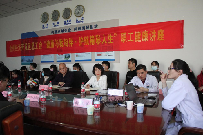 為進(jìn)一步發(fā)揮“職工健康生活室”服務(wù)職工的作用,切實(shí)響應(yīng)國務(wù)院《健康中國行動(dòng)(2019-2030年)》發(fā)展戰(zhàn)略,提高廣大職工自我健康管理意識(shí),掌握健康知識(shí),建設(shè)健康環(huán)境,近日,公司工會(huì)聯(lián)合滄州市人民醫(yī)院特舉辦“健康與我相伴·護(hù)航精彩人生”職工健康講座活動(dòng)。