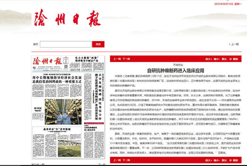 據(jù)河北天成藥業(yè)股份有限公司常務(wù)副總經(jīng)理王顥介紹,注射用紫杉醇(白蛋白結(jié)合型)作為經(jīng)典的化療藥物,在治療多種實(shí)體瘤中發(fā)揮著重要作用,特別是在乳腺癌治療中有顯著療效。然而,長(zhǎng)久以來,此類藥物價(jià)格高昂。為了讓腫瘤患者用上可負(fù)擔(dān)得起的高品質(zhì)抗腫瘤藥,2014年,天成藥業(yè)抽調(diào)專業(yè)技術(shù)研發(fā)團(tuán)隊(duì),成立全資子公司——河北道恩藥業(yè)有限公司,先后投資約3億元,打造了具備高端研發(fā)水平的復(fù)雜注射劑研發(fā)平臺(tái),重點(diǎn)布局長(zhǎng)循環(huán)脂質(zhì)體、雙載藥復(fù)方脂質(zhì)體以及白蛋白納米粒等高端復(fù)雜制劑的研發(fā)與生產(chǎn),在腫瘤靶向給藥系統(tǒng)領(lǐng)域取得了獨(dú)特的技術(shù)優(yōu)勢(shì)。通過創(chuàng)仿結(jié)合的發(fā)展模式,企業(yè)研發(fā)團(tuán)隊(duì)持續(xù)對(duì)10余種具有高臨床價(jià)值的仿制藥和改良型新藥開展技術(shù)攻關(guān)。經(jīng)過多年的反復(fù)試驗(yàn),注射用紫杉醇(白蛋白結(jié)合型)成為天成藥業(yè)首款研制成功的抗腫瘤藥,并于今年1月份正式獲得國(guó)家藥品監(jiān)督管理局(NMPA)頒發(fā)上市許可批件。此款抗腫瘤藥不僅在安全性和療效上達(dá)到了國(guó)際領(lǐng)先水平,還可部分替代進(jìn)口,大幅降低了腫瘤患者的治療成本。
