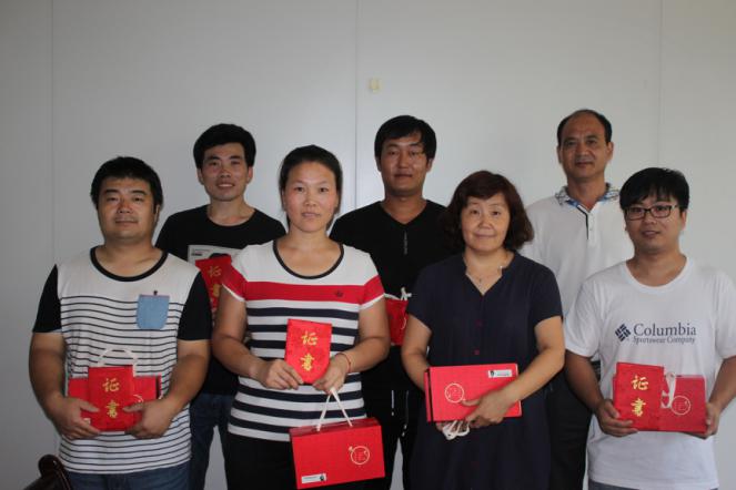 2016年8月11日,由公司副總經(jīng)理王顥為獲得7月份優(yōu)秀員工稱號的人員進行頒獎。本期優(yōu)秀員工為:冷振環(huán)、楊香、王炳芬、武明會、馬洪林、劉樹立、張帥。